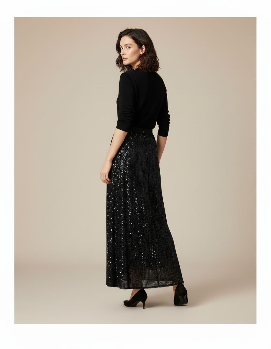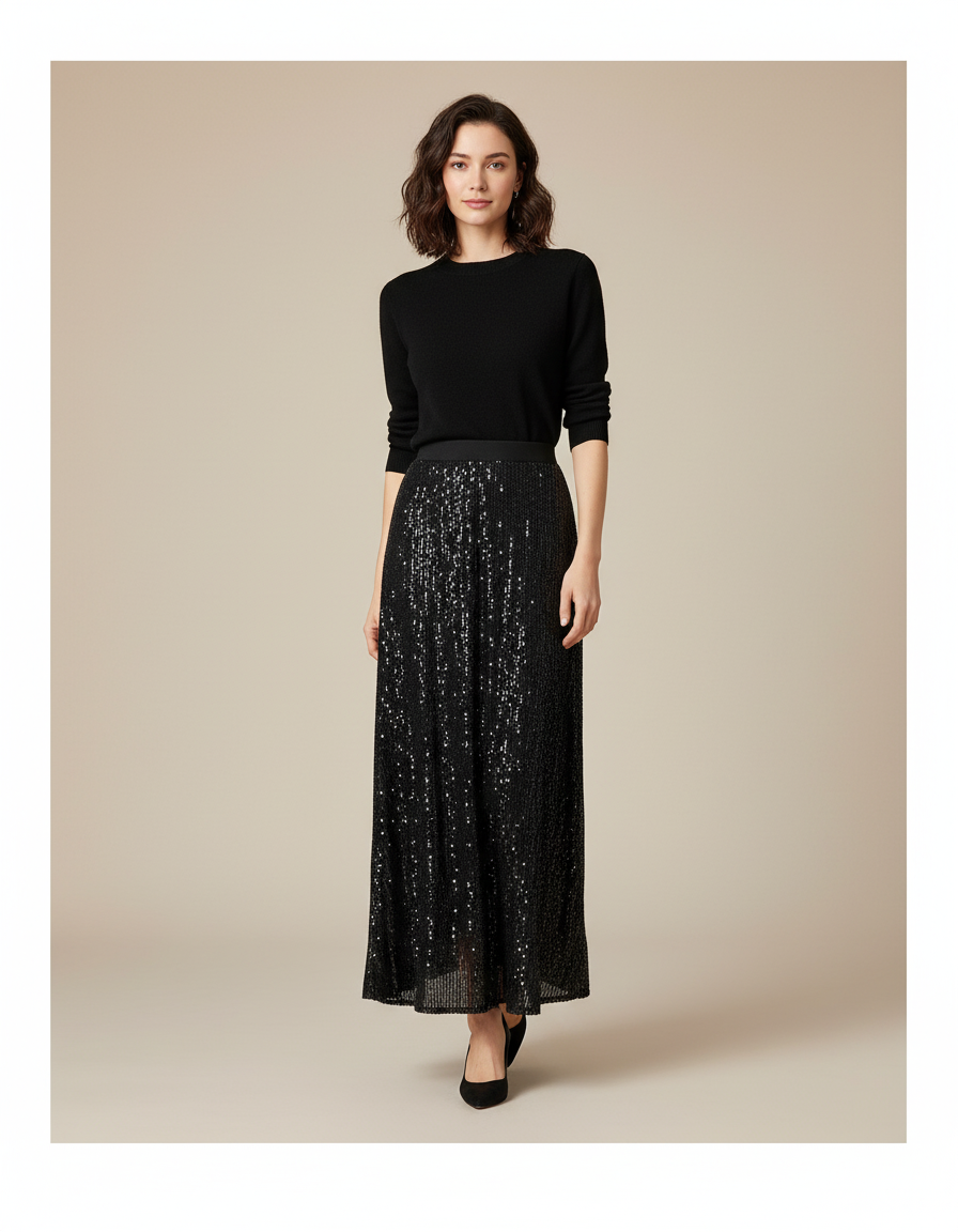 La Jupe Longue Noir Paillette : L'Éclat Redéfini