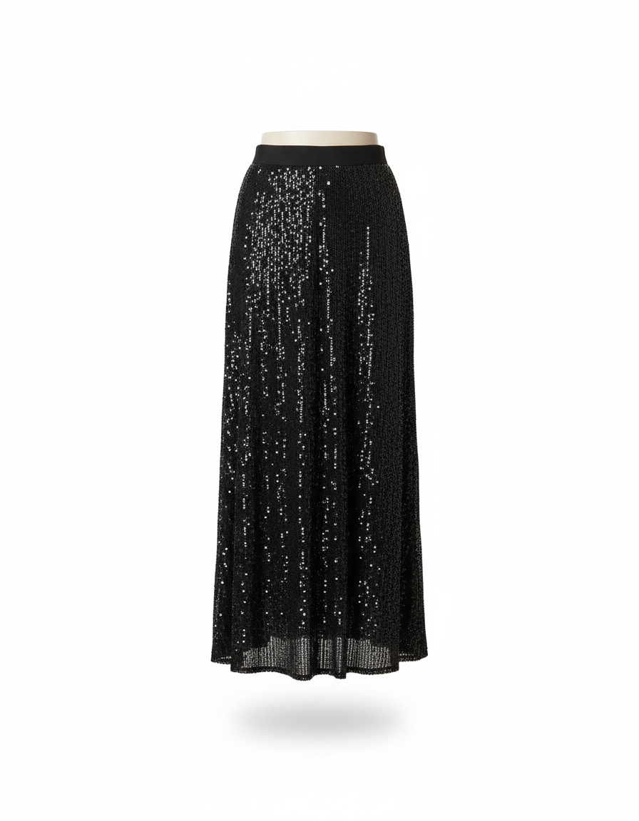 Dévoilez votre Éclat : La Jupe Longue Noir Paillette, Pièce Maîtresse de Votre Garde-Robe