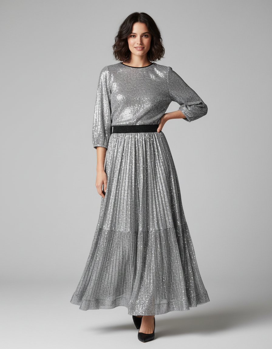 Jupe Longue Plissée Paillette : L'Éclat Redéfini pour la Femme Moderne