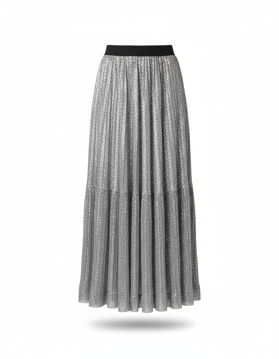 Révélez votre éclat : La Jupe Longue Plissée Paillette, Pièce Maîtresse de Votre Garde-Robe
